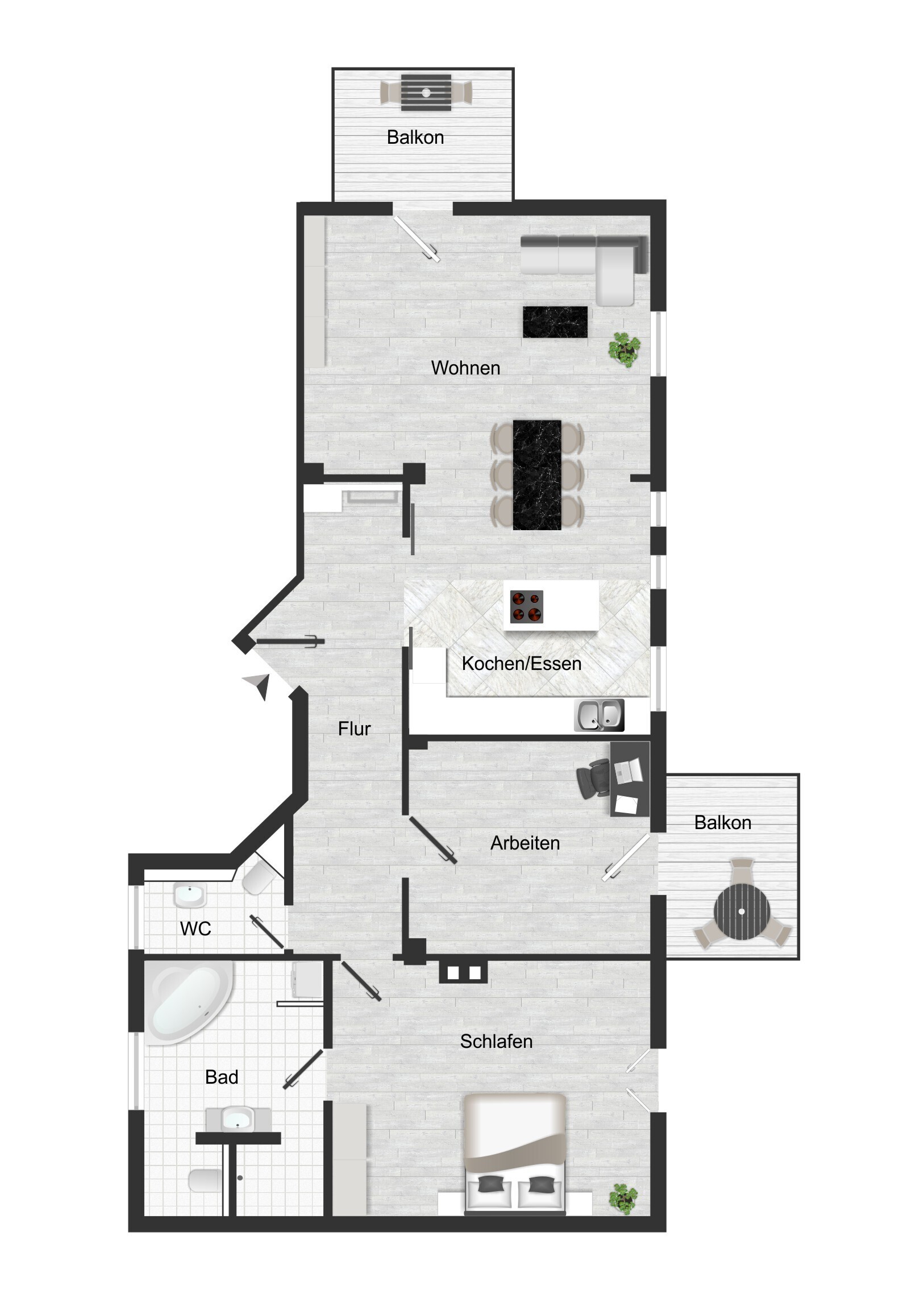 Ein besonderes Highlight der Wohnung sind die zwei Balkone, die zusätzlichen Freiraum im Alltag bieten – ideal für den ersten Kaffee am Morgen oder den entspannten Feierabend.